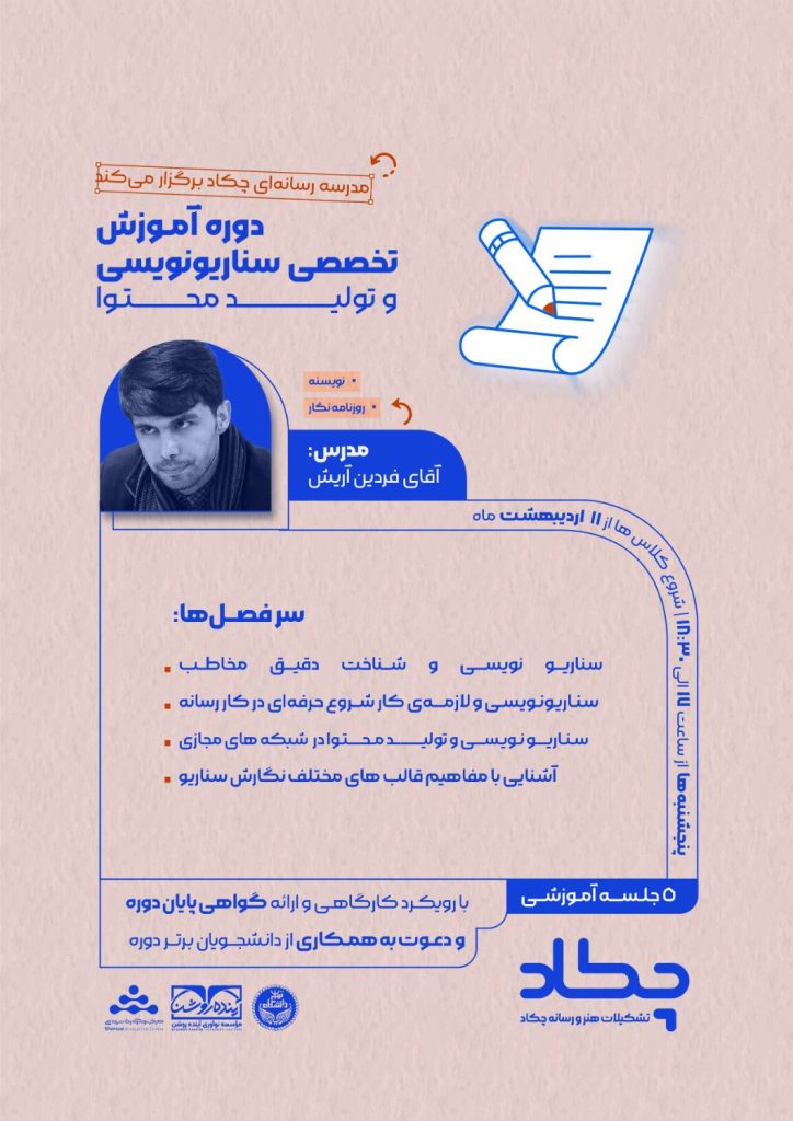 شرح دوره: در این دوره، شما با اصول داستانپردازی، شخصیتپردازی، دیالوگنویسی، و ساختار فیلمنامه آشنا میشوید. همچنین، یاد میگیرید چگونه ایدههای خود را به یک سناریوی جذاب و قابل اجرا تبدیل کنید. علاوه بر این، با تکنیکهای تولید محتوای متنی، تصویری، و ویدئویی برای رسانههای مختلف (وبسایت، شبکههای اجتماعی، تلویزیون و غیره) آشنا خواهید شد.
