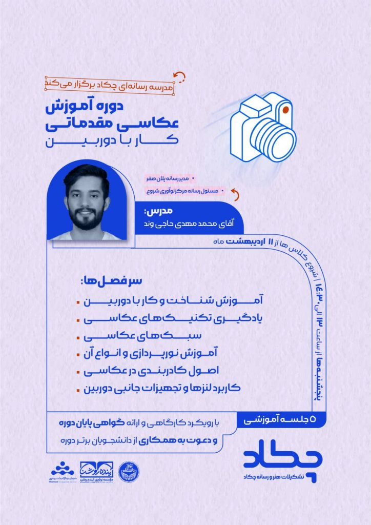 در دنیای امروز، رسانه قلب تپنده ارتباطات و ابزاری قدرتمند برای تاثیرگذاری است. اگر به دنبال ورود به این عرصه پویا و پرچالش هستید و میخواهید با مهارتهای حرفهای، ایدههای خود را به تصویر بکشید و داستانهایتان را روایت کنید، "مدرسه رسانه ای چکاد" همراه شماست. ما در این مدرسه، مجموعهای از دورههای تخصصی را با هدف توانمندسازی شما در زمینههای مختلف رسانه ارائه میدهیم: